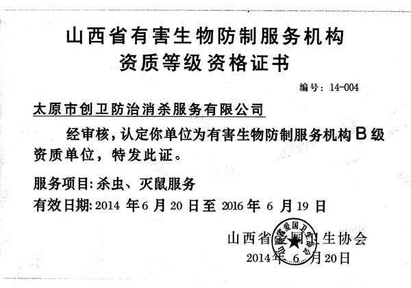 太原市創衛防治消殺服務有限公司專業從事除蟲滅鼠防治工作,我們以專業的技術支持和全方位的服務保障向客戶提供專業化、標準化服務。創衛防治消殺公司是專業承接山西各地區滅鼠業務、專業從事環境消殺工程及相關產品銷售的綜合型環保企業。主要面向企業、學校、政府機關、醫院、住宅小區、養老院、商場、商務樓等單位提供優質一體化專業消殺服務,為城市爭創衛生城市做貢獻。